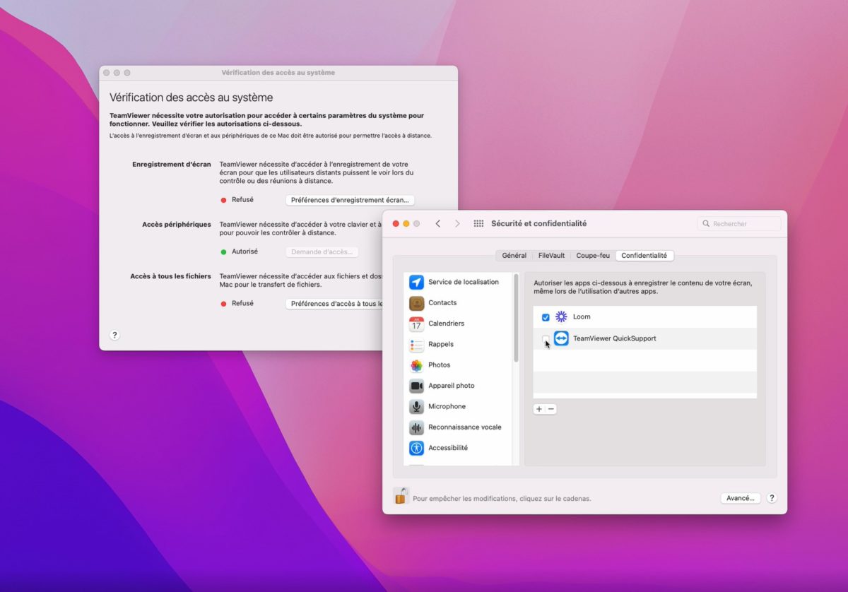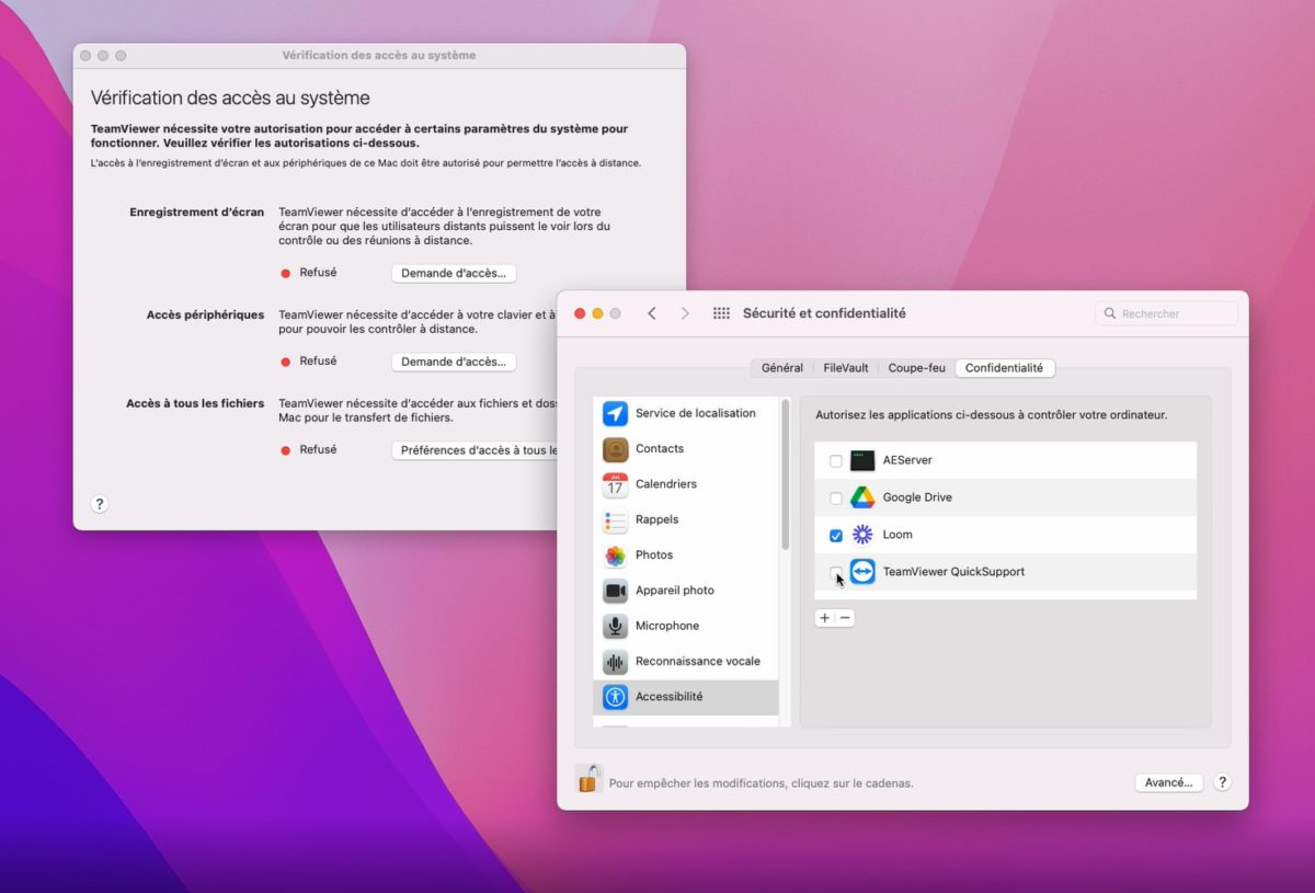 L’application va vous demandez des accès au système que vous allez devoir autoriser pour rendre TeamViewer totalement opérationnel.