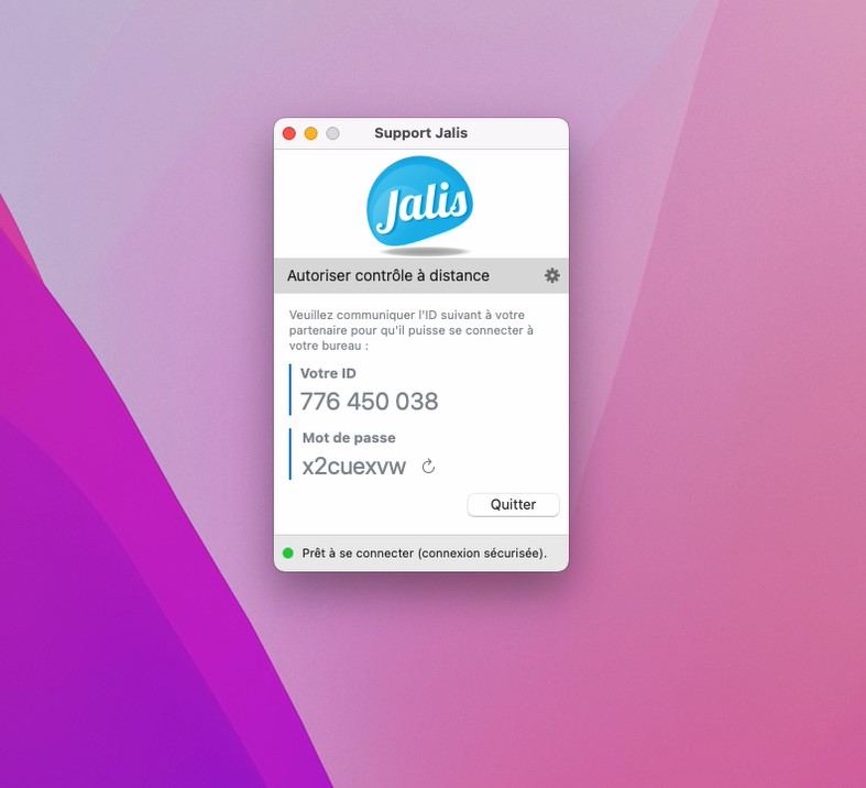 Vous n’avez plus qu’à communiquer votre ID et Mot de passe à votre technicien afin qu’il intervienne sur votre poste.