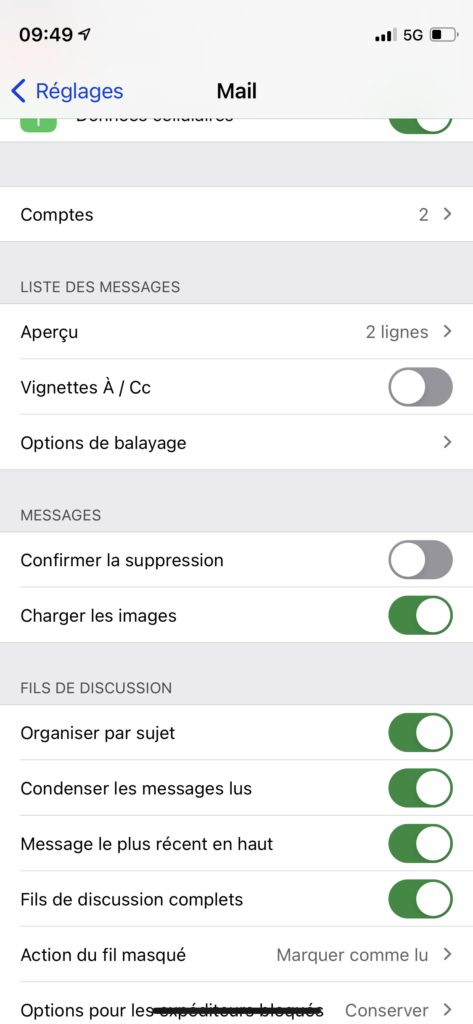 Toutefois avant de supprimer les mails sur les serveurs, il faut dans un premier temps contrôler le paramétrage de votre boite mail sur votre iPhone afin de ne pas perdre des emails importants.