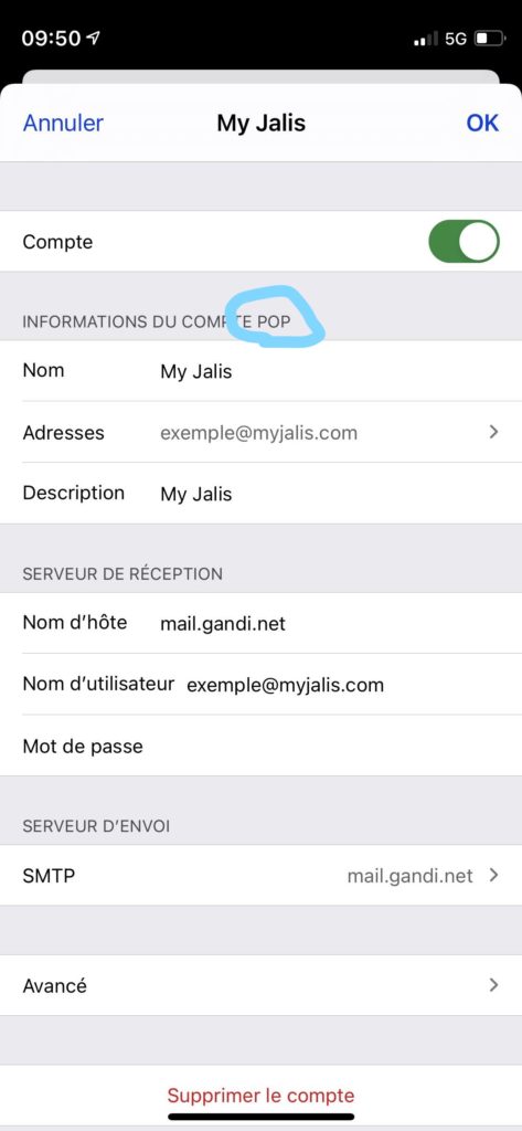 Pour passer la configuration de votre boite mail de l’IMAP en POP, vous devrez supprimer le compte mail de votre iPhone et la reconfigurer en POP.