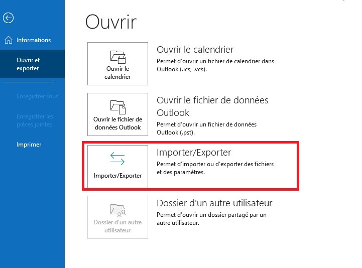 - Sélectionnez Fichier > Ouvrir et exporter > Importer/Exporter
