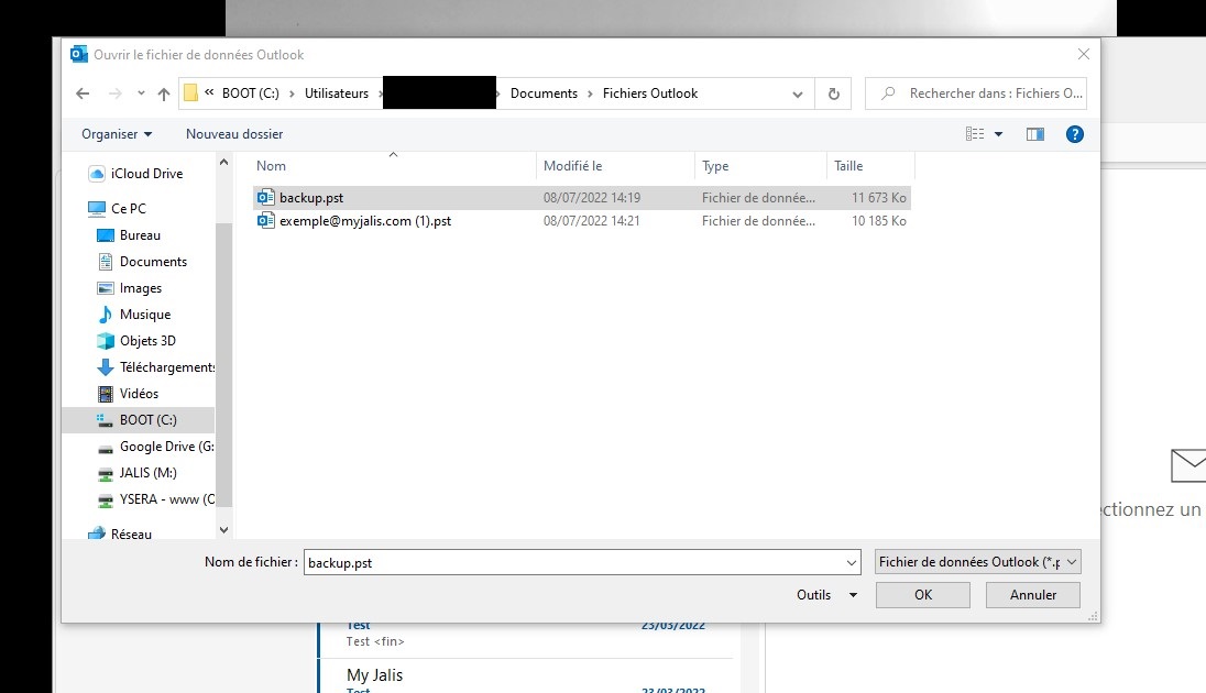 Tous vos mails sont désormais sauvegardés dans un fichier que vous pouvez déplacer sur un support externe (Clé USB / Disque Dur Externe)