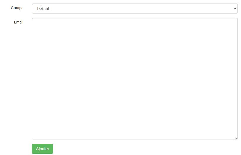 Si vous optez pour le seconde bouton, vous pourrez ajouter tous vos abonnés depuis le champ prévu à cet effet les uns à la suite des autres. Et vous aurez la possibilité également de choisir le groupe d’abonnés dans lequel placer les nouveaux inscrits.
