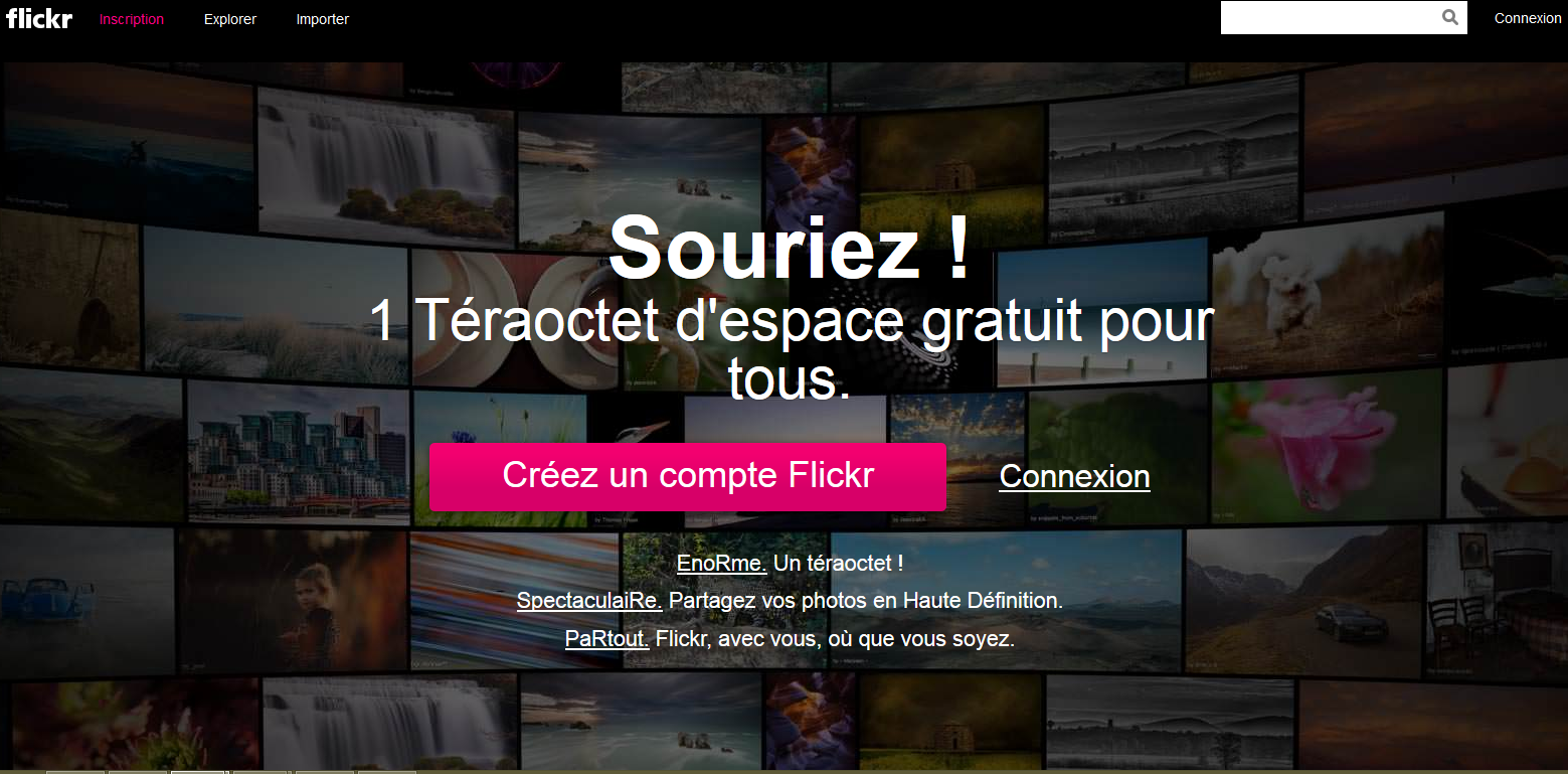 1. Rendez-vous sur Flickr.com, et connectez-vous. Si vous n’avez pas de compte, le site vous invite à en créer un gratuitement :