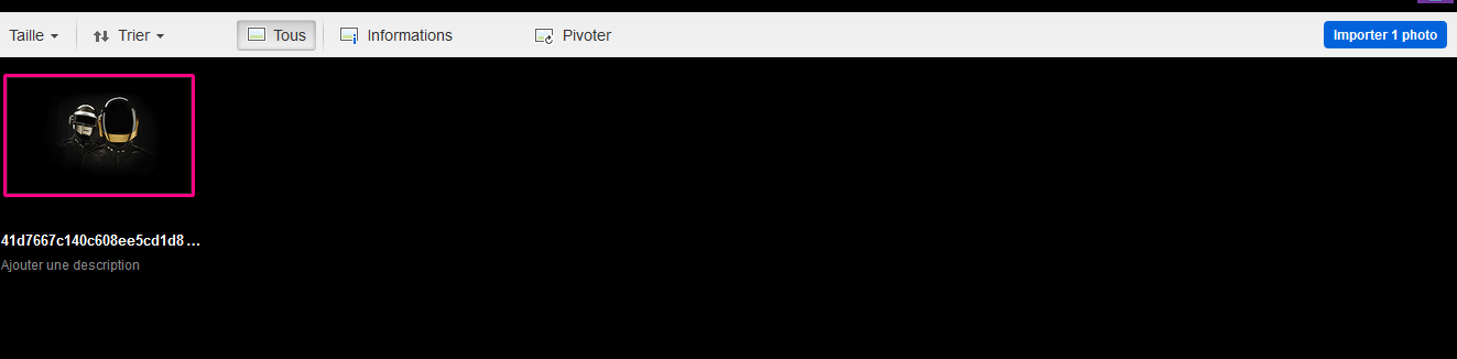 3. Validez en cliquant sur le bouton « Importer 1 photo » :