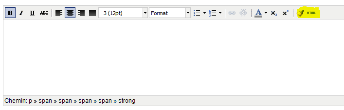 6. Rendez-vous dans la gestion de votre site, dans la catégorie concernant votre page, et cliquez sur le bouton « HTML » / Ou « Code source »: