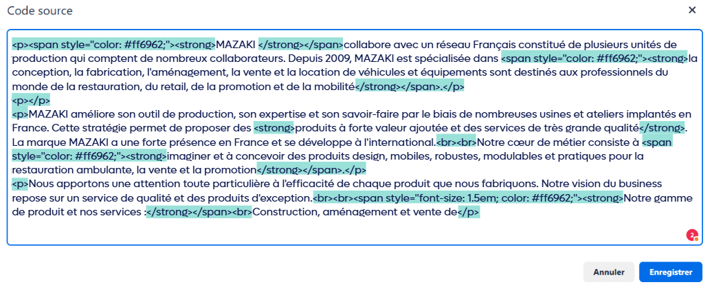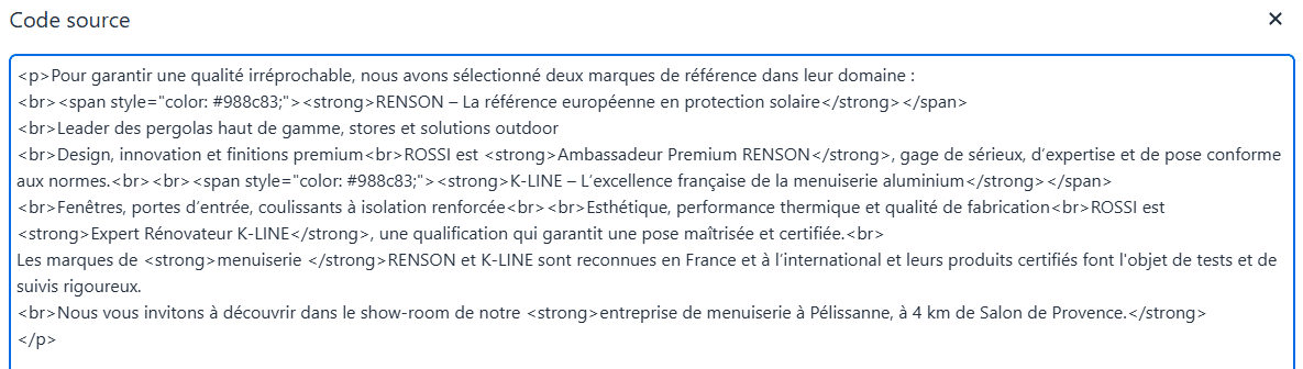 Cela permet de voir et de modifier directement le HTML de votre contenu.