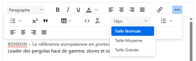 Pour cela, vous pouvez aller sur le bouton qui présente trois petits points, et sélectionner une taille de texte :