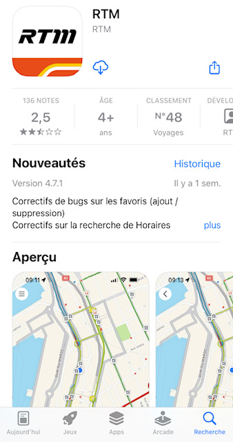 L’application mobile de la RTM (Régie des Transport Marseillais)