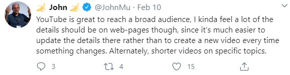 Le contenu vidéo est une opportunité de référencement qui est très souvent négligé. Bien qu’un contenu vidéo de qualité puisse être coûteux à produire, il s’agit d’un domaine inexploité par ceux qui espèrent améliorer leur présence dans le SERP. Pour soutenir davantage l’importance des vidéos YouTube, l’analyste Webmaster de chez Google, John Mueller, a récemment fourni des conseils sur YouTube, recommandant des vidéos plus courtes ciblant des sujets spécifiques.
