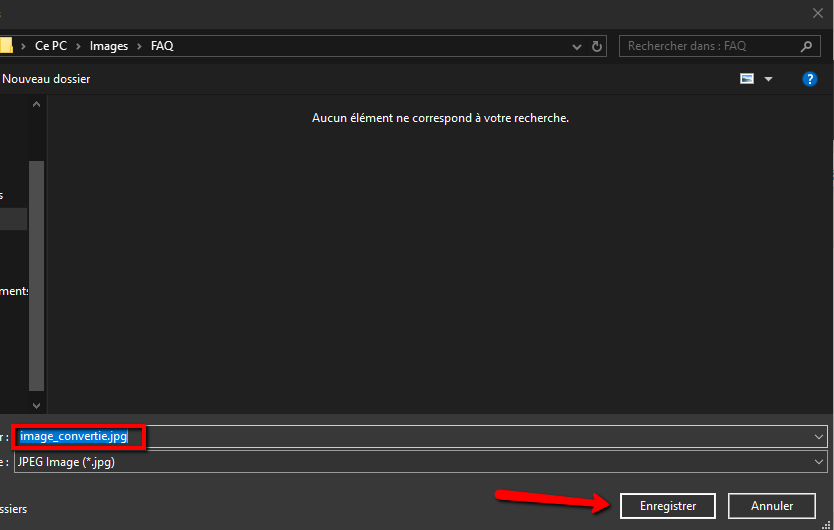 Dans la fenêtre qui s’ouvre (explorateur de fichier), sélectionnez le dossier dans lequel vous souhaitez enregistrer votre image – pensez à renommer la photo, pour quelle ne contienne ni espace, ni caractère spéciaux – et cliquez sur Enregistrer