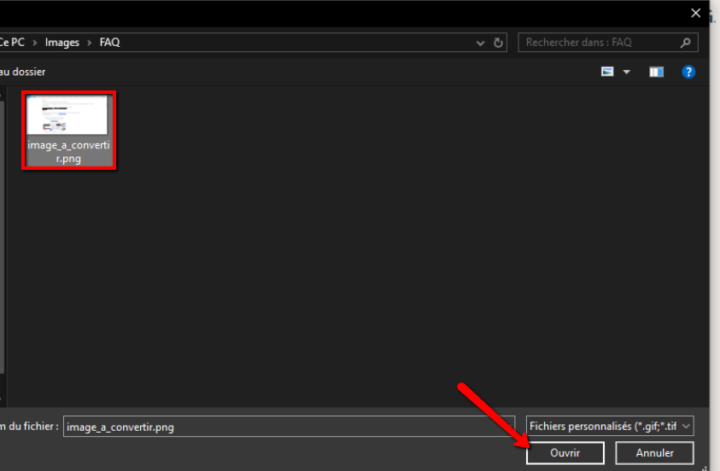 Une fois l’image sélectionnée cliquez sur cliquez sur Ouvrir