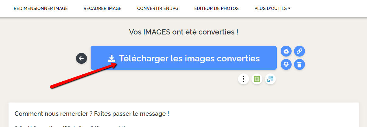 Cliquez en suite sur :Convertir en JPG et Télécharger les images converties