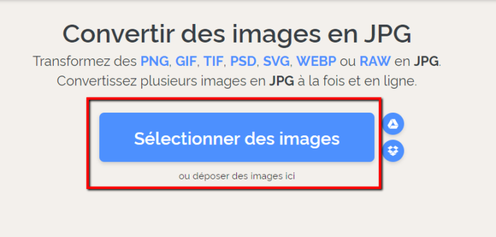 Cliquez sur Convertir en JPG, puis cliquez sur Sélectionner des images