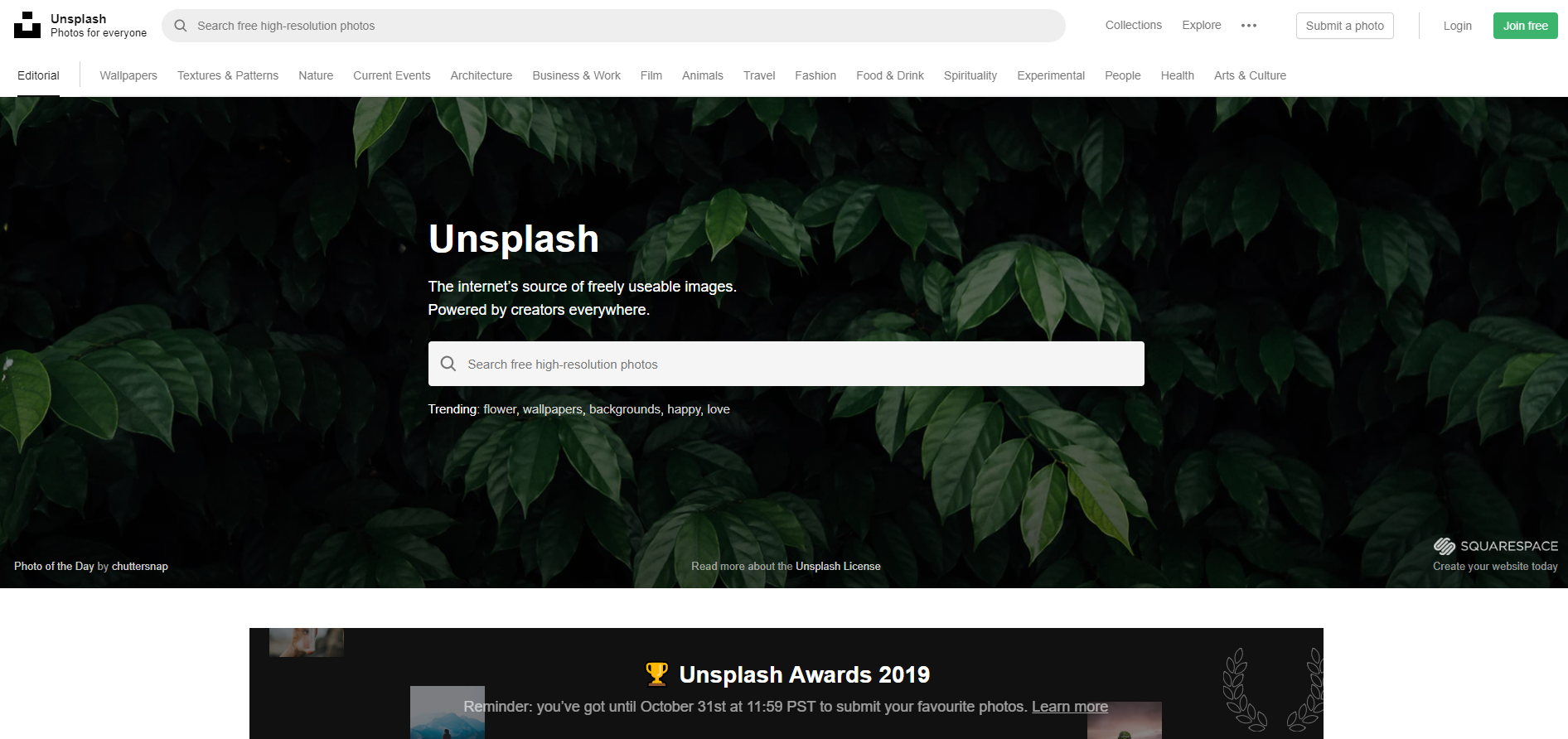 Sur la plateforme Unsplash vous retrouverez également énormément d’images gratuitement. La plateforme de demande pas de don non plus en échange.