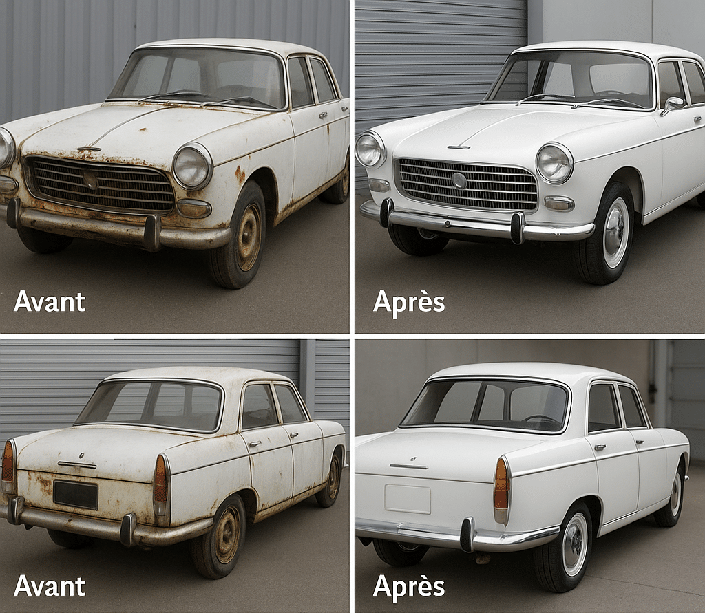 Nous avons récemment accueilli dans notre atelier de Salon-de-Provence une magnifique Peugeot 404 de 1968, confiée par un passionné souhaitant redonner vie à ce modèle emblématique. Le véhicule, transmis dans la famille depuis deux générations, nécessitait une restauration complète tout en préservant son charme d’origine.