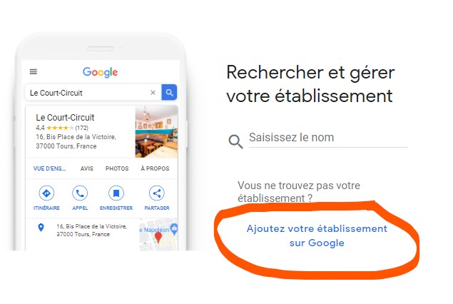NON ⇒ Cliquer sur « Ajoutez votre établissement sur Google »